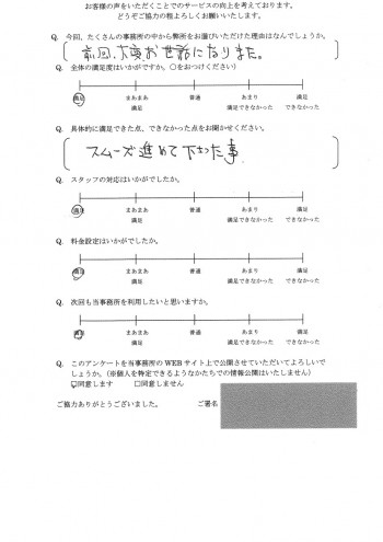 以前、ご両親の相続手続を行っていることもあり、 相続人の関係性もある程度事務所でも把握していたこともあり、 ご相談者様と連携しながらスムーズに進めることができました。